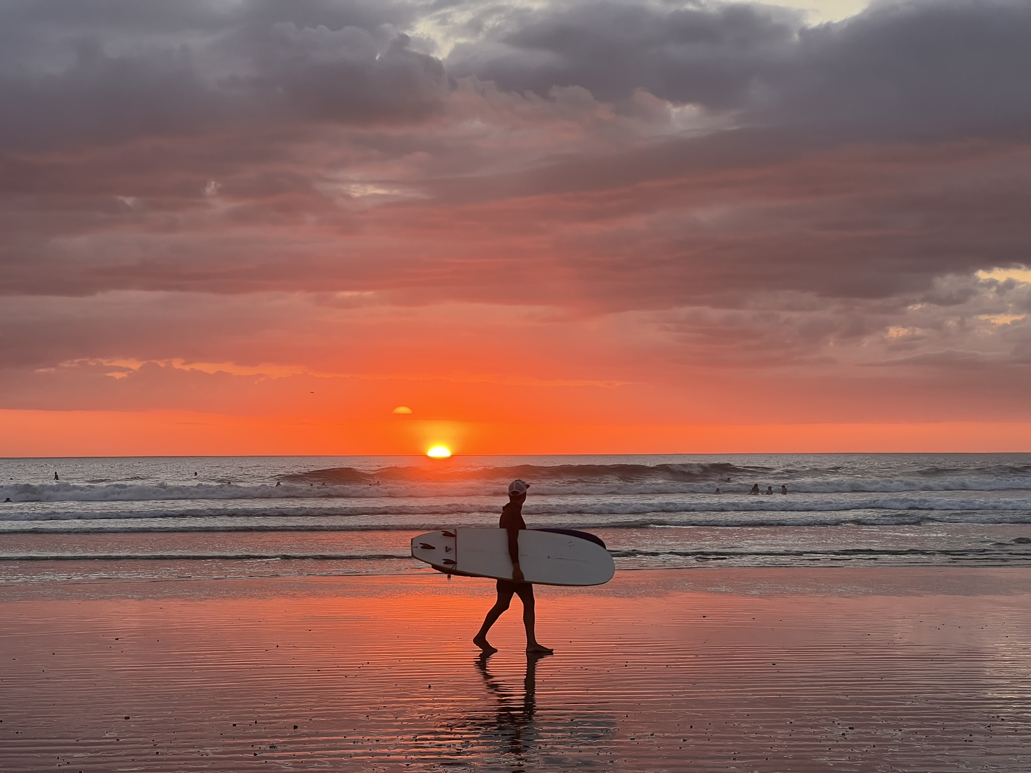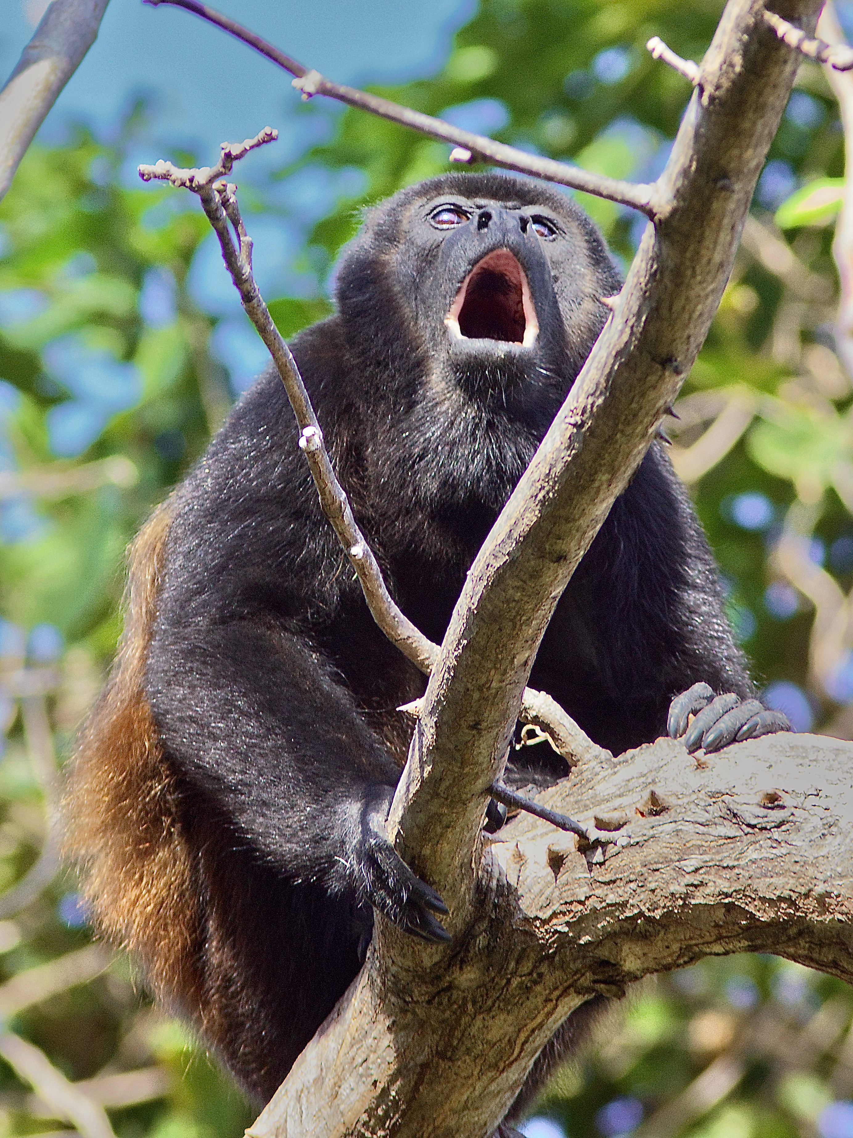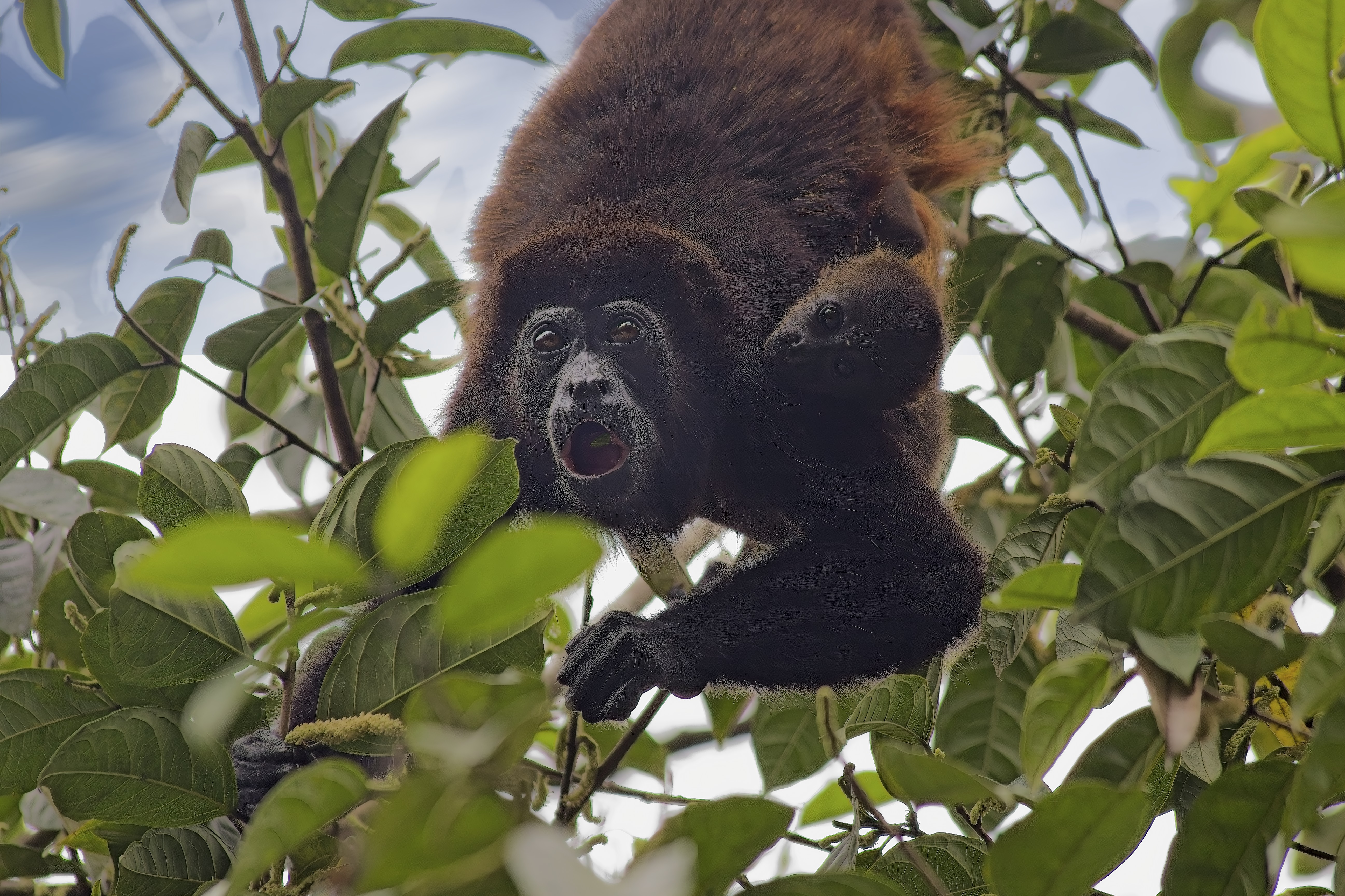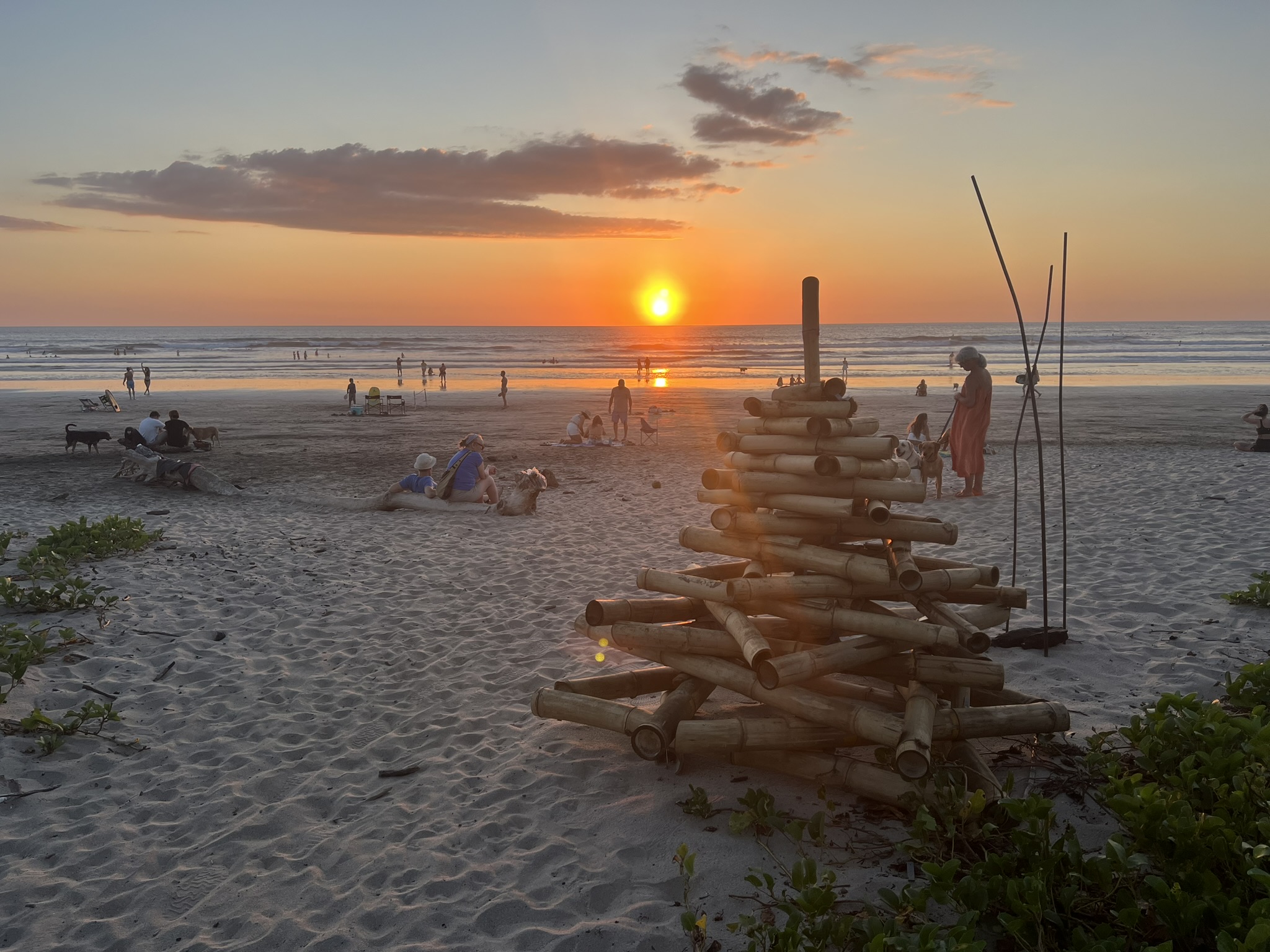 Living spaces at SunsetSanctuaryNosara are decorated in part with photos of local howler monkeys. These vociferous little tree dwellers are endangered — population growth in and around Nosara is continually reducing their natural habitat, forcing them onto power lines to move around. The sad result is frequent injury and death from electrocution. In an effort to help, SunsetSanctuaryNosara is offering our photos for sale (monkeys, sunsets, etc.), with proceeds going to build monkey bridges and cover electrical transformers around town.